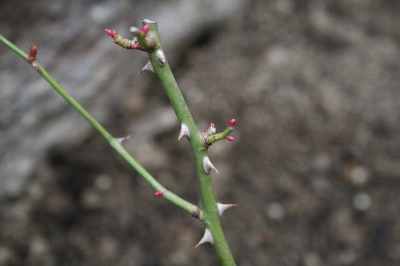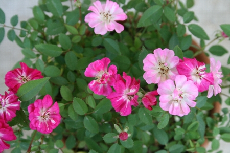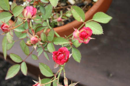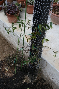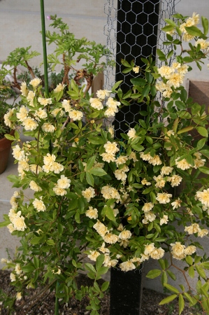いつもの庭とは反対側、玄関前のフェンスにからませる予定です。