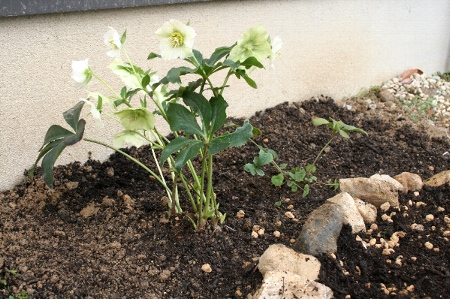 そしてハナミズキの下にはクリスマスローズを植えました。