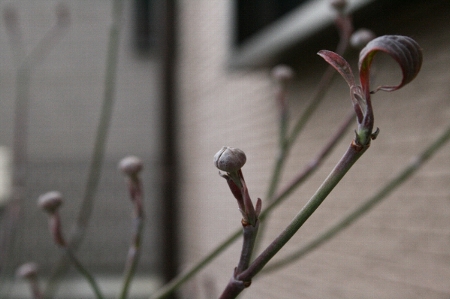 ハナミズキの花芽(蕾?)はコロンとして・・ちょっとしめじっぽい(笑