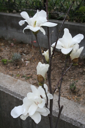 そんな強風の中、ハクモクレンが咲きました♪