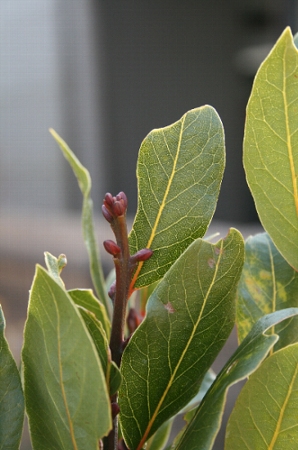 月桂樹です。新芽がふくらんできました。