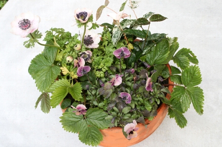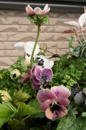 アネモネ・ポルト、神戸ビオラ・ミニョン、初雪かずら、ワイルドストロベリーです。