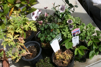 月桂樹の苗木、蚊取草、ゲラニウム、オレガノ、セダム・・あとは寄せ植えの材料。